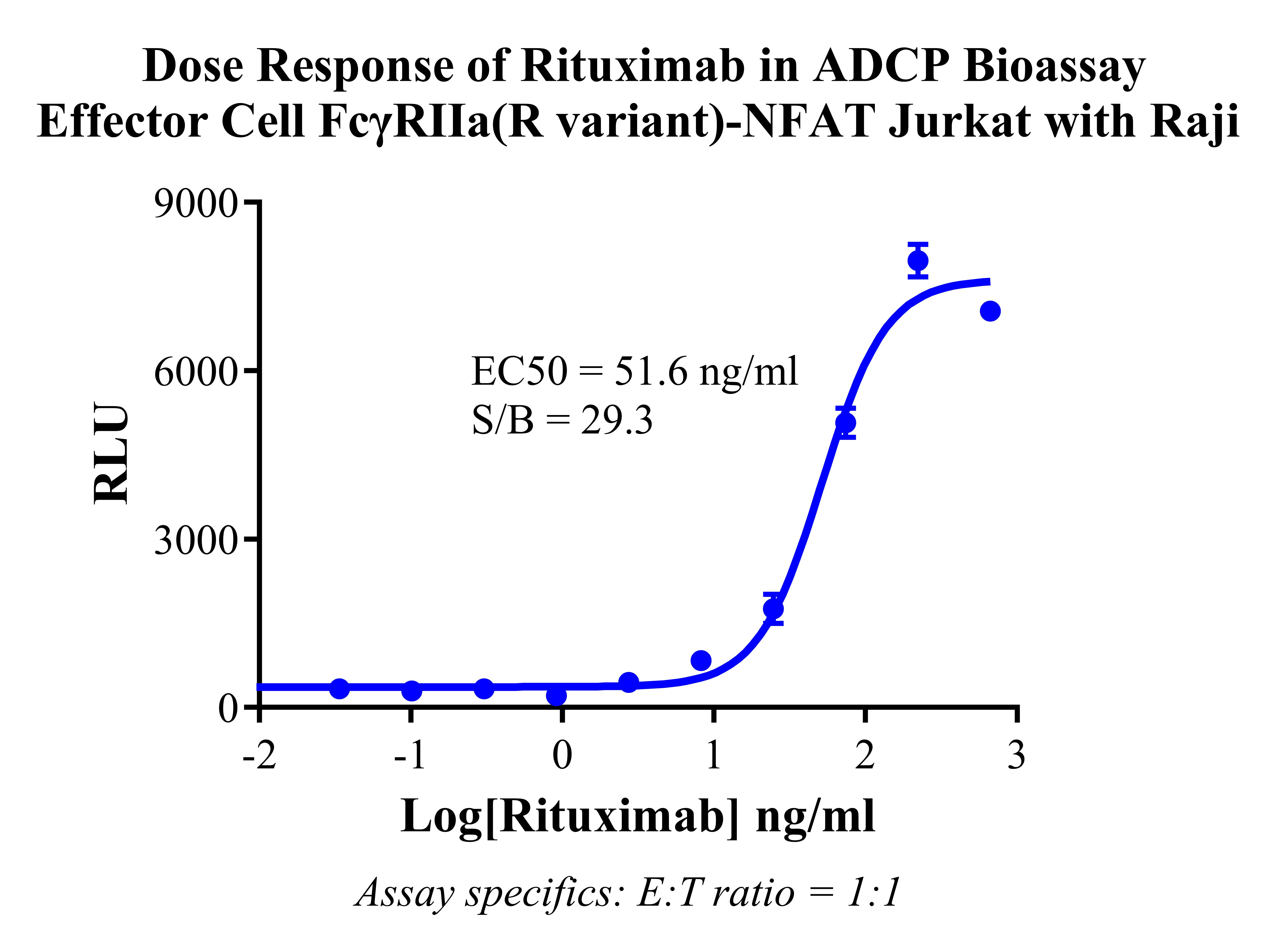![]() Figure 3. Dose Response of Rituximab in ADCP Bioassay Effector Cell FcγRIIa(R variant)-NFAT Jurkat with Raji. |
