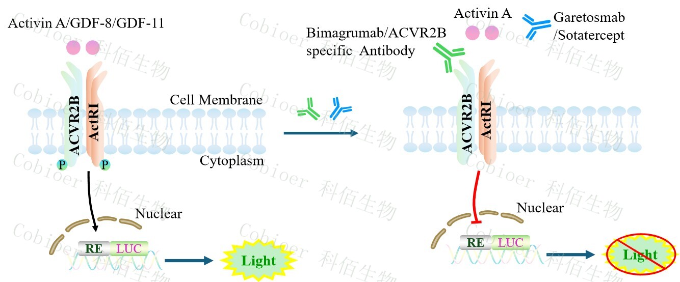 ACVR2B Effector Reporter Cell 報告基因藥靶模型很好的模擬了體內 ACVR2A 的信號轉導過程,原理見圖 所示。