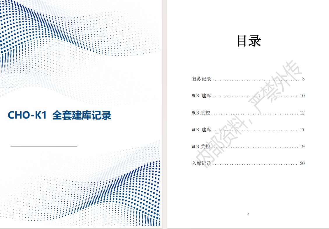 全套建庫記錄:復蘇記錄→MCB建庫→MCB質控→WCB建庫→WCB質控→入庫記錄,形成從細胞復蘇、主細胞庫(MCB)到工作細胞庫(WCB)的全套建庫操作記錄,保證工藝鏈條完全可追溯與質量可控。