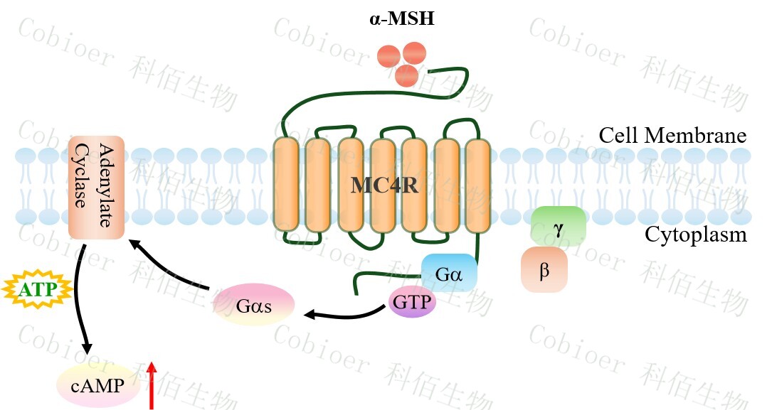 黑皮質素 4 受體(MC4R)是黑皮質素受體家族成員之一,其家族成員還包括:MC1R、 MC2R、MC3R 和 MC5R。該家族也是 GPCR 超家族中具有重大治療前景的一個亞家族, 屬于視紫紅質樣 A 類 GPCR。MC4R 主要分布于下丘腦室旁核、杏仁核等食欲與能量平衡 調控中樞,其內源性激動配體為α-黑素細胞刺激素(α-MSH),拮抗配體為刺豚鼠相關蛋 白(AgRP);該受體通過偶聯 Gs 蛋白激活腺苷酸環化酶,引起 cAMP 升高,從而啟動 PKA/CREB 信號通路,并介導β-arrestin 依賴的 MAPK 活化,核心功能為抑制食欲、促進能 量消耗,其功能喪失性突變直接導致單基因肥胖、胰島素抵抗及代謝綜合征,而功能獲得 性突變則與反常的瘦表型相關。 |