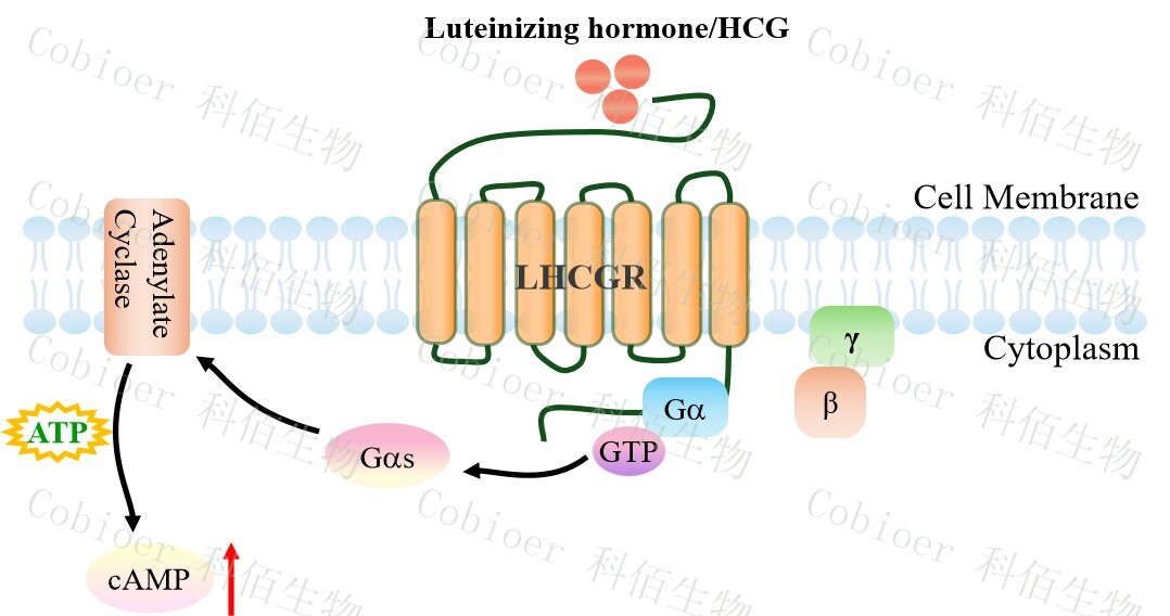 LHCGR(黃體生成素/絨毛膜促性腺激素受體)屬于 G 蛋白偶聯(lián)受體(GPCR)家族中 的糖蛋白激素受體亞家族,主要分布于性腺組織(如睪丸間質(zhì)細(xì)胞、卵巢卵泡膜細(xì)胞、黃 體細(xì)胞及排卵前卵泡),其天然配體為垂體分泌的黃體生成素(LH)和胎盤分泌的絨毛膜 促性腺激素(hCG);該受體通過偶聯(lián) Gs 蛋白,激活腺苷酸環(huán)化酶,使升 cAMP 高,引起 PKA/CREB 信號(hào)通路的激活(同時(shí)涉及β-arrestin 介導(dǎo)的 ERK 通路)。LHCGR 在睪丸中驅(qū) 動(dòng)睪酮合成、在卵巢中調(diào)控卵泡發(fā)育/排卵/黃體孕酮分泌,并維持早期妊娠;其功能異常 可引發(fā)多種疾病:功能喪失性突變導(dǎo)致男性萊氏綜合征(假兩性畸形、睪酮缺乏)及女性 卵巢無應(yīng)答綜合征(閉經(jīng)、不孕),功能獲得性突變引起男性家族性性早熟或女性卵巢過 度刺激綜合征(OHSS),同時(shí)在顆粒細(xì)胞瘤等性腺腫瘤中異常高表達(dá),而受體與 hCG 的 互作是早孕檢測(cè)和輔助生殖促排卵治療的核心靶點(diǎn)。 |
