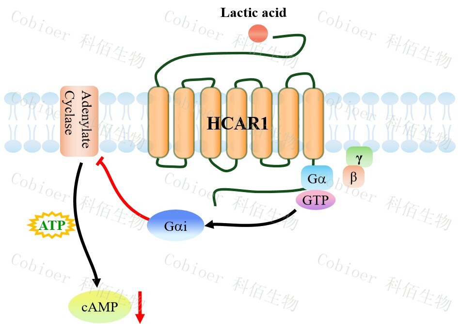 HCAR1(羥基羧酸受體 1),亦稱 GPR81,是一種分布于脂肪組織、免疫細胞(如巨 噬細胞)、神經元及肝細胞的 G 蛋白偶聯受體(GPCR),屬于羥基羧酸受體亞家族,其 內源性配體為乳酸(L-lactate);該受體通過偶聯 Gi/o 蛋白,抑制腺苷酸環化酶,降低 cAMP 水平,從而抑制 PKA 信號,同時激活β-arrestin 通路。其核心功能包括,在脂肪組織 中抑制脂解、促進脂質儲存,在免疫細胞中調控炎癥反應(如抑制促炎因子釋放、促進 M2 型巨噬細胞極化),在神經系統中參與乳酸介導的神經保護及能量穩態調節;其信號 異常與代謝性疾病(如肥胖、胰島素抵抗)、神經炎癥疾病(多發性硬化、腦缺血)及腫 瘤微環境重塑(乳酸介導的免疫逃逸)密切相關,尤其在腫瘤組織中高表達的 HCAR1 可 通過抑制抗腫瘤免疫應答促進進展,成為代謝-免疫交叉治療的潛在靶點。 |