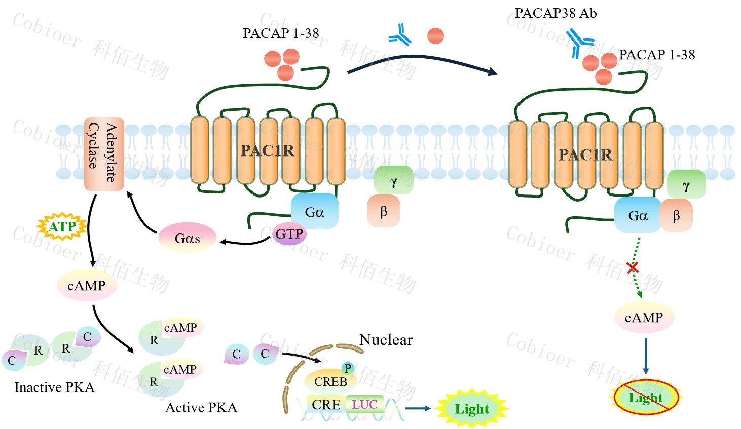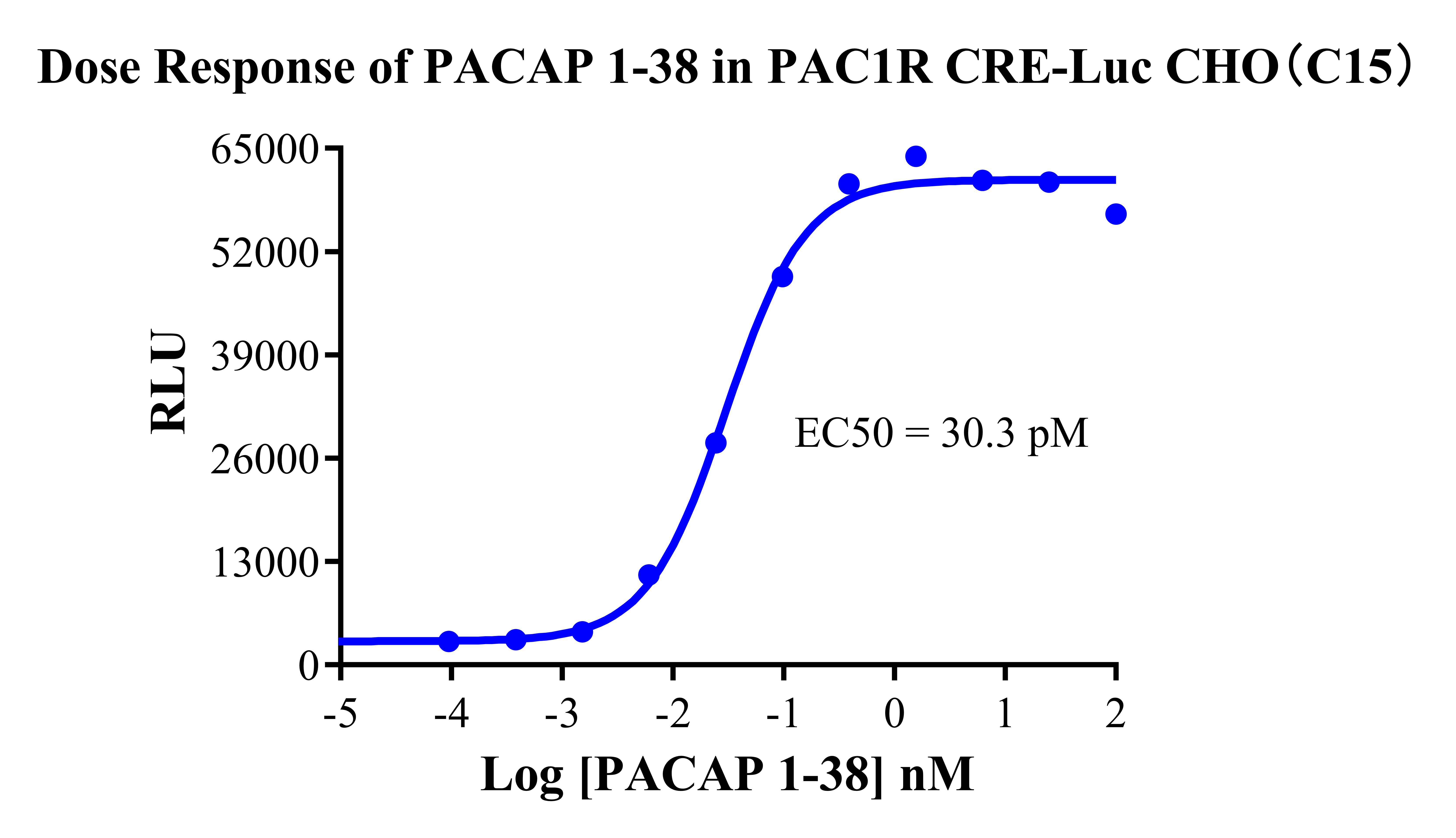PAC1R CRE-Luc CHO 報告基因藥靶模型很好的模擬了體內 PAC1R 的信號轉導過程, 原理見下圖所示。![]() Figure 1. PAC1R CRE-Luc CHO 細胞模型原理圖 |
