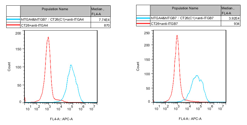 IV. Representative Data![]() Figure 1. Recombinant hITGA4&hITGB7/CT26 stably expressing hITGA4&hITGB7. |