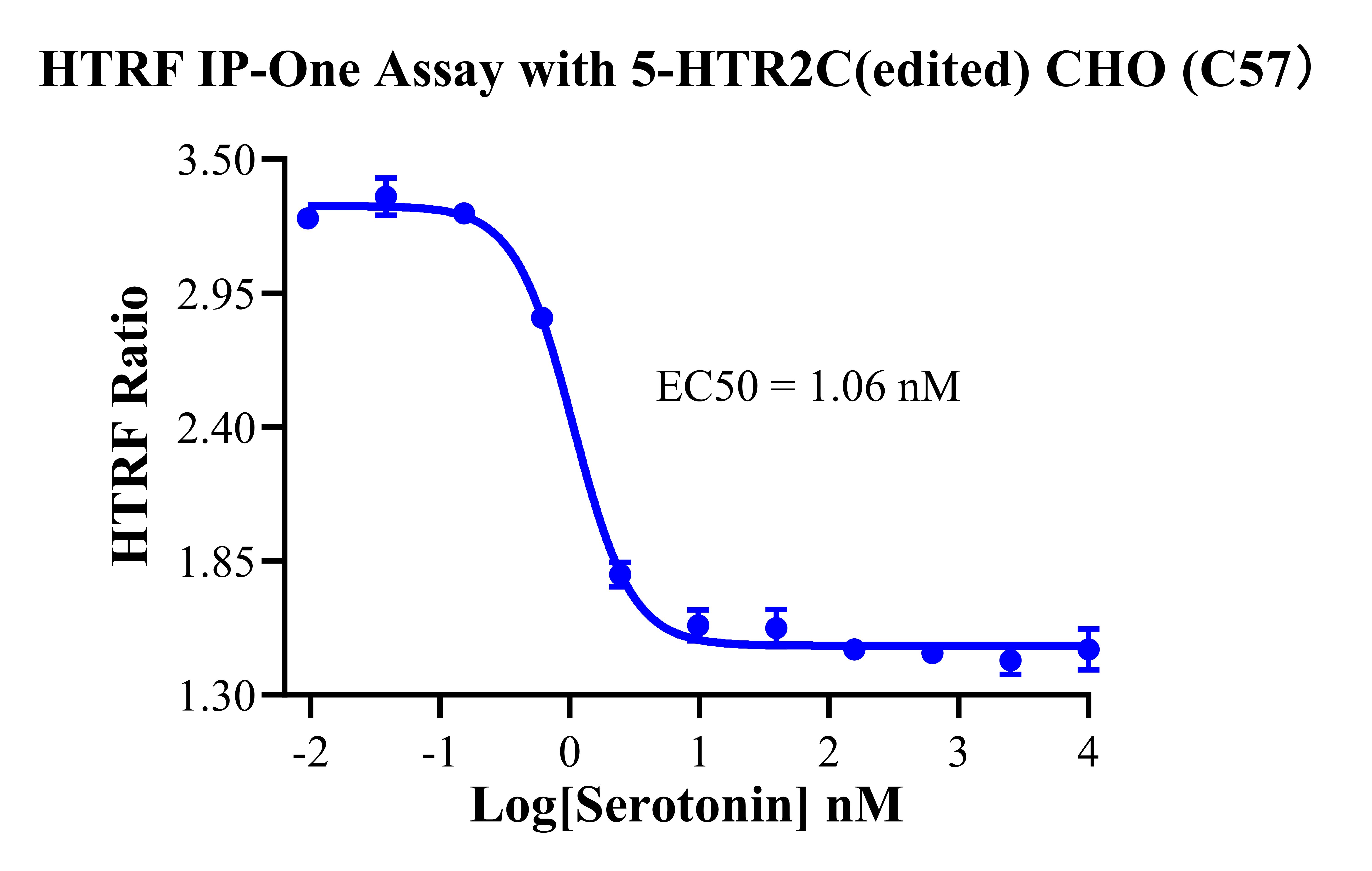 V. Representative Data![]() Figure 2. Recombinant 5-HTR2C (edited) CHO stably expressing h5-HTR2C. ![]() Figure 3. HTRF IP-One Assay with 5-HTR2C(edited) CHO(C57). |
